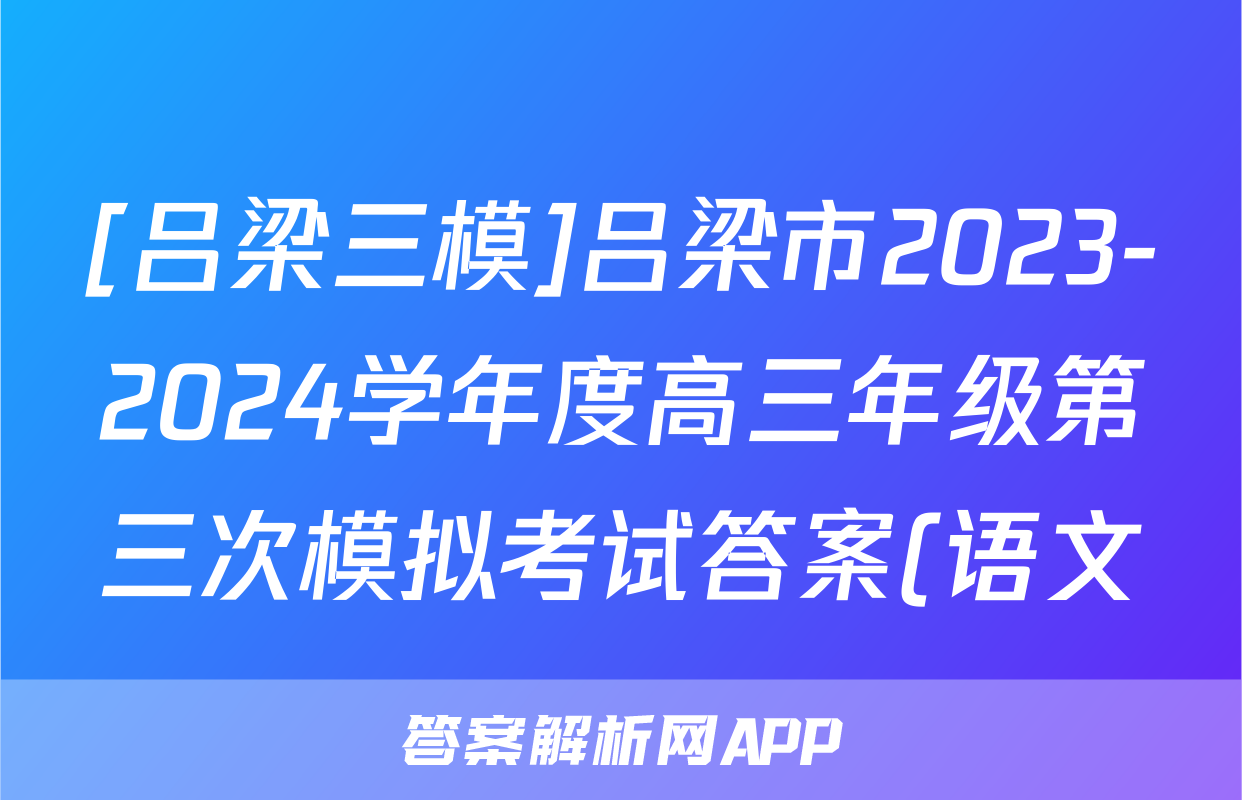 [吕梁三模]吕梁市2023-2024学年度高三年级第三次模拟考试答案(语文)正在持续更新,目前2026届海淀八模答案网为大家整理了相关试题及答案,供大家查缺补漏,高效提升成绩。