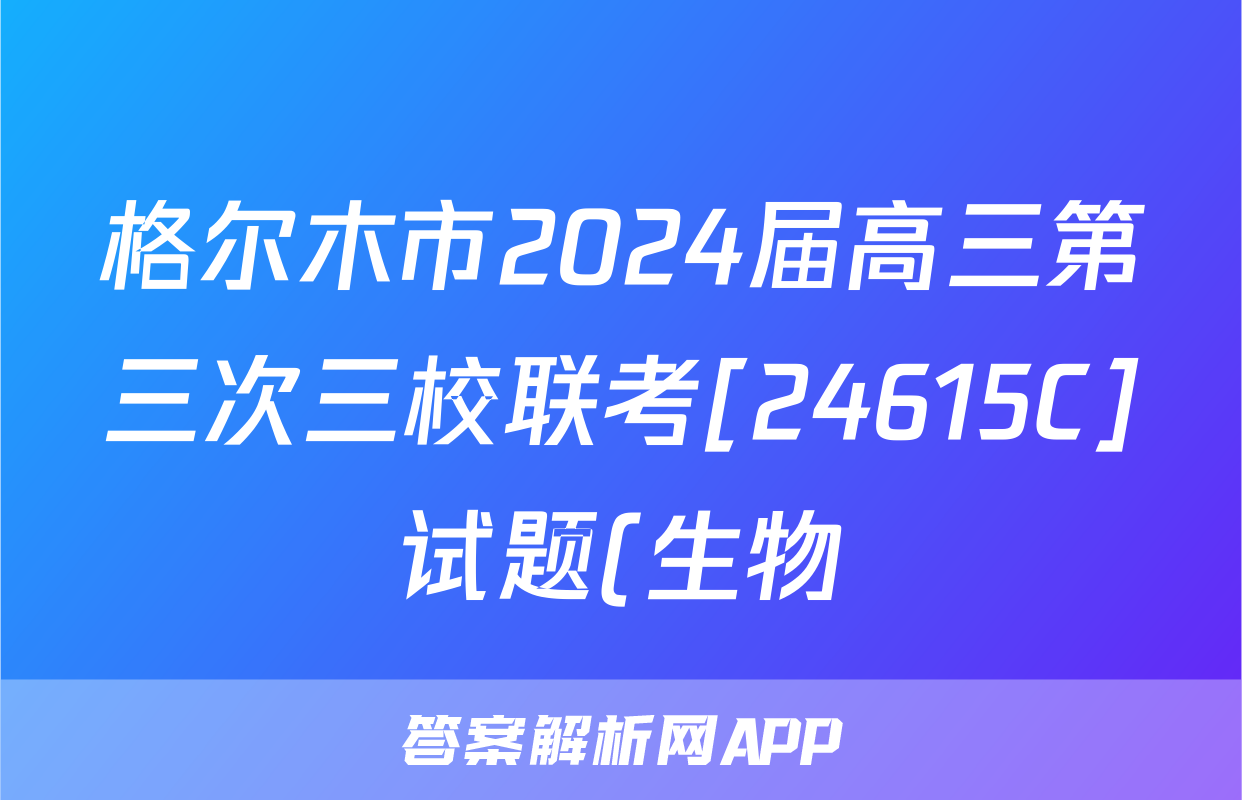 格尔木市2024届高三第三次三校联考[24615C]试题(生物)正在持续更新,目前2026届海淀八模答案网为大家整理了相关试题及答案,供大家查缺补漏,高效提升成绩。