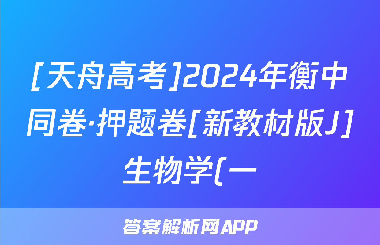 [天舟高考]2024年衡中同卷·押题卷[新教材版J]生物学(一)1试题正在持续更新,目前2026届海淀八模答案网为大家整理了相关试题及答案,供大家查缺补漏,高效提升成绩。