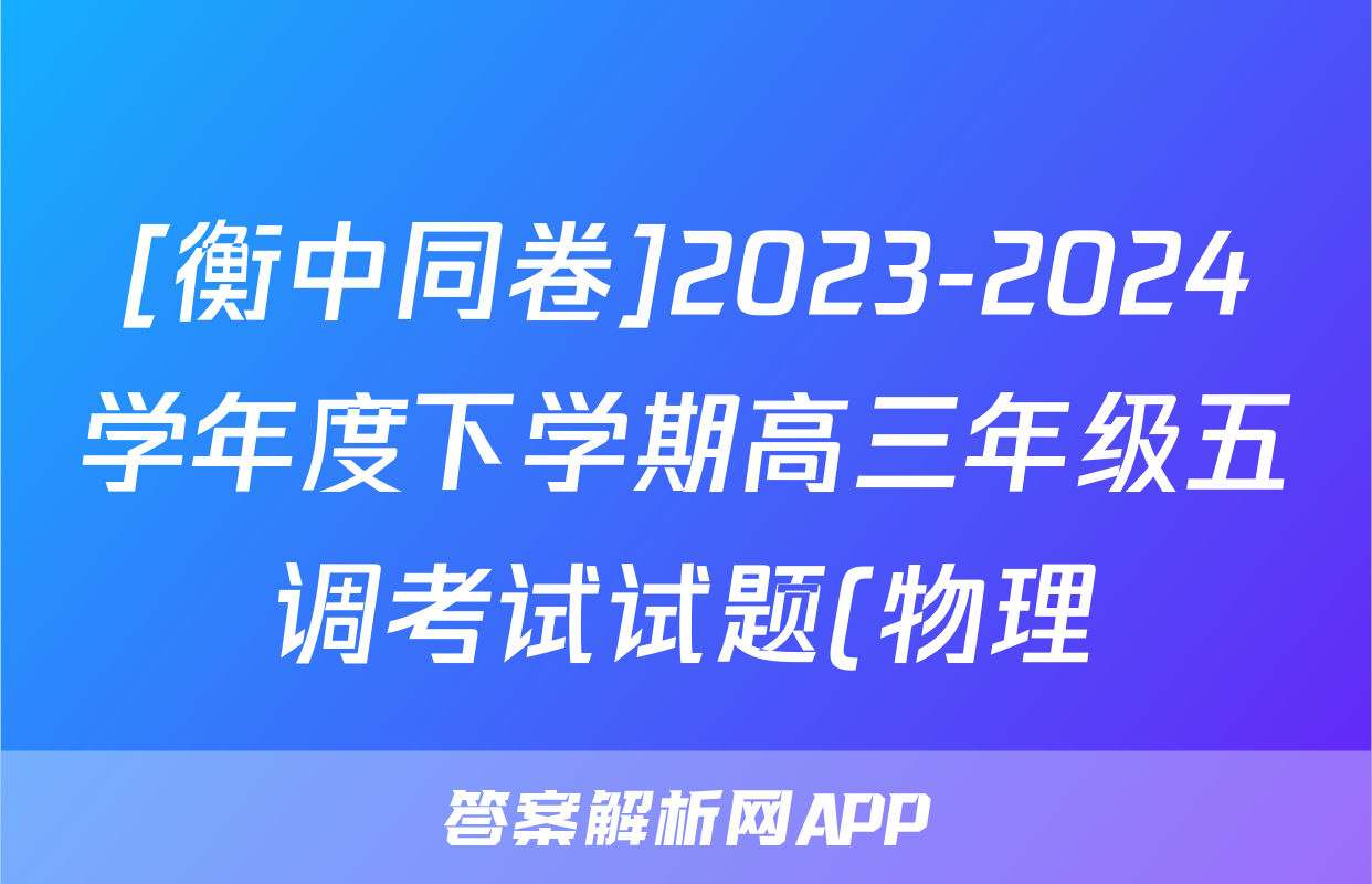 [衡中同卷]2023-2024学年度下学期高三年级五调考试试题(物理)正在持续更新,目前2026届海淀八模答案网为大家整理了相关试题及答案,供大家查缺补漏,高效提升成绩。