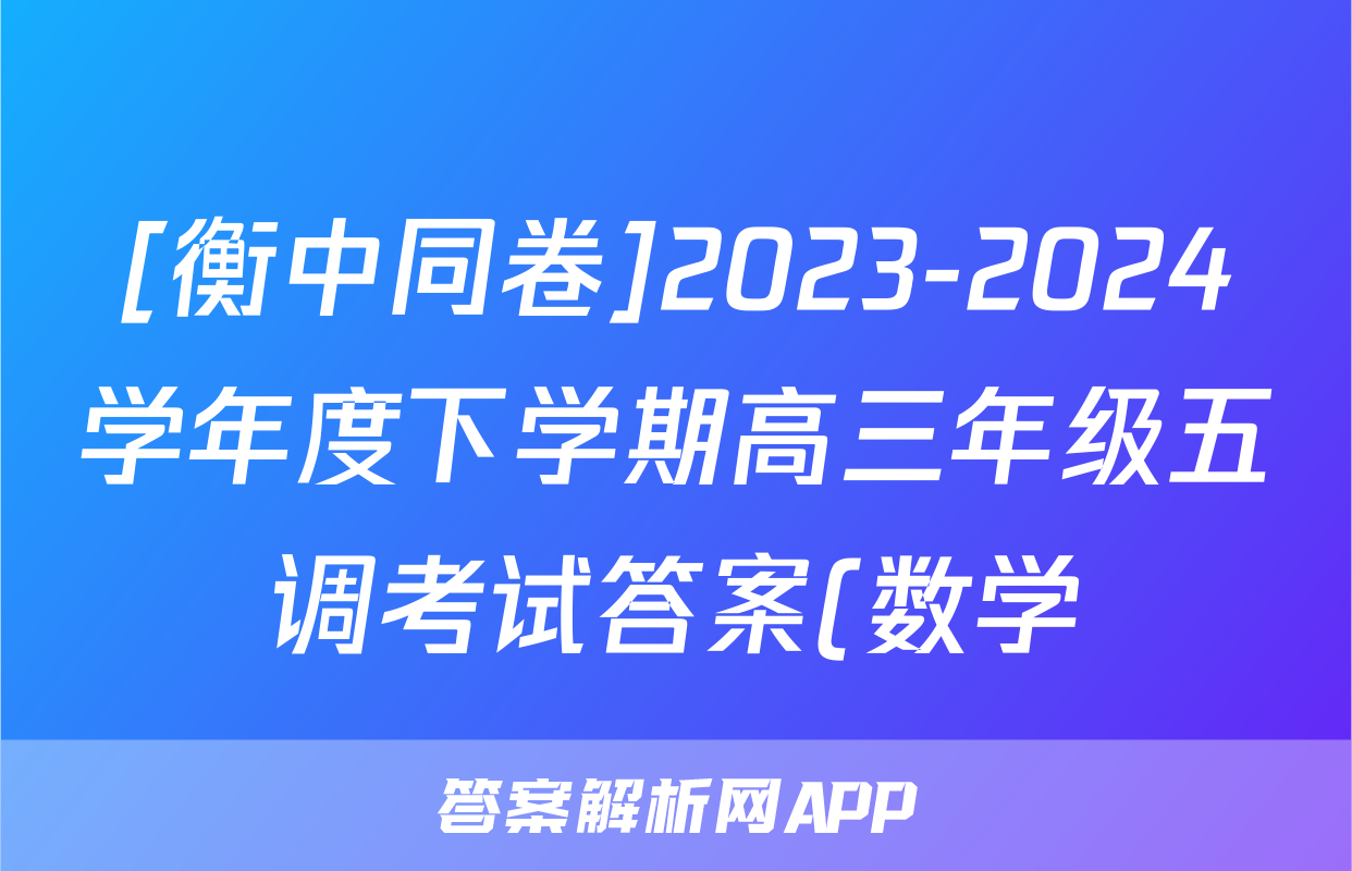 [衡中同卷]2023-2024学年度下学期高三年级五调考试答案(数学)正在持续更新,目前2026届海淀八模答案网为大家整理了相关试题及答案,供大家查缺补漏,高效提升成绩。