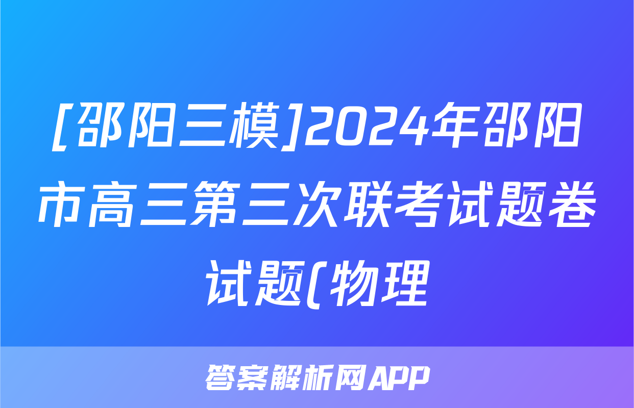 [邵阳三模]2024年邵阳市高三第三次联考试题卷试题(物理)正在持续更新,目前2026届海淀八模答案网为大家整理了相关试题及答案,供大家查缺补漏,高效提升成绩。