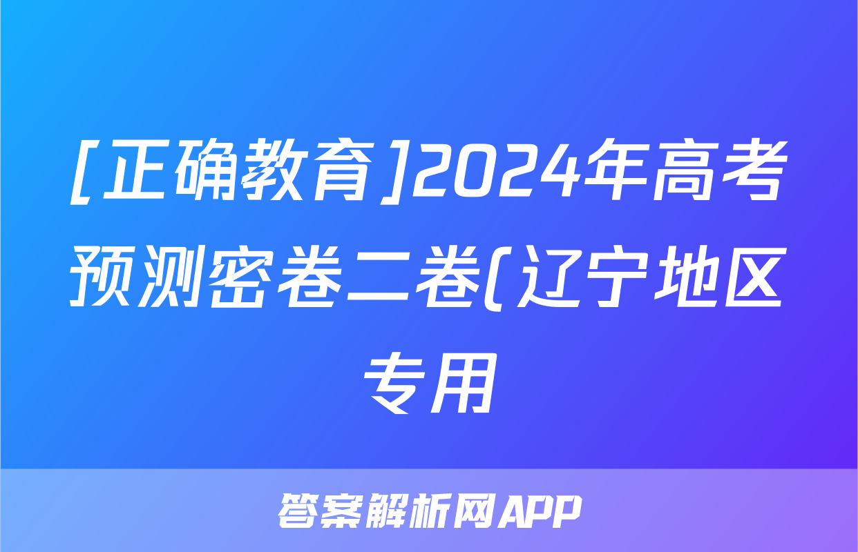 [正确教育]2024年高考预测密卷二卷(辽宁地区专用)生物(辽宁)试题正在持续更新,目前2026届海淀八模答案网为大家整理了相关试题及答案,供大家查缺补漏,高效提升成绩。