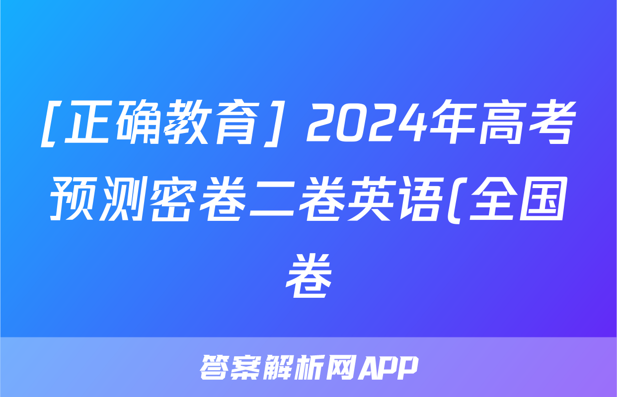 [正确教育] 2024年高考预测密卷二卷英语(全国卷)答案正在持续更新,目前2026届海淀八模答案网为大家整理了相关试题及答案,供大家查缺补漏,高效提升成绩。