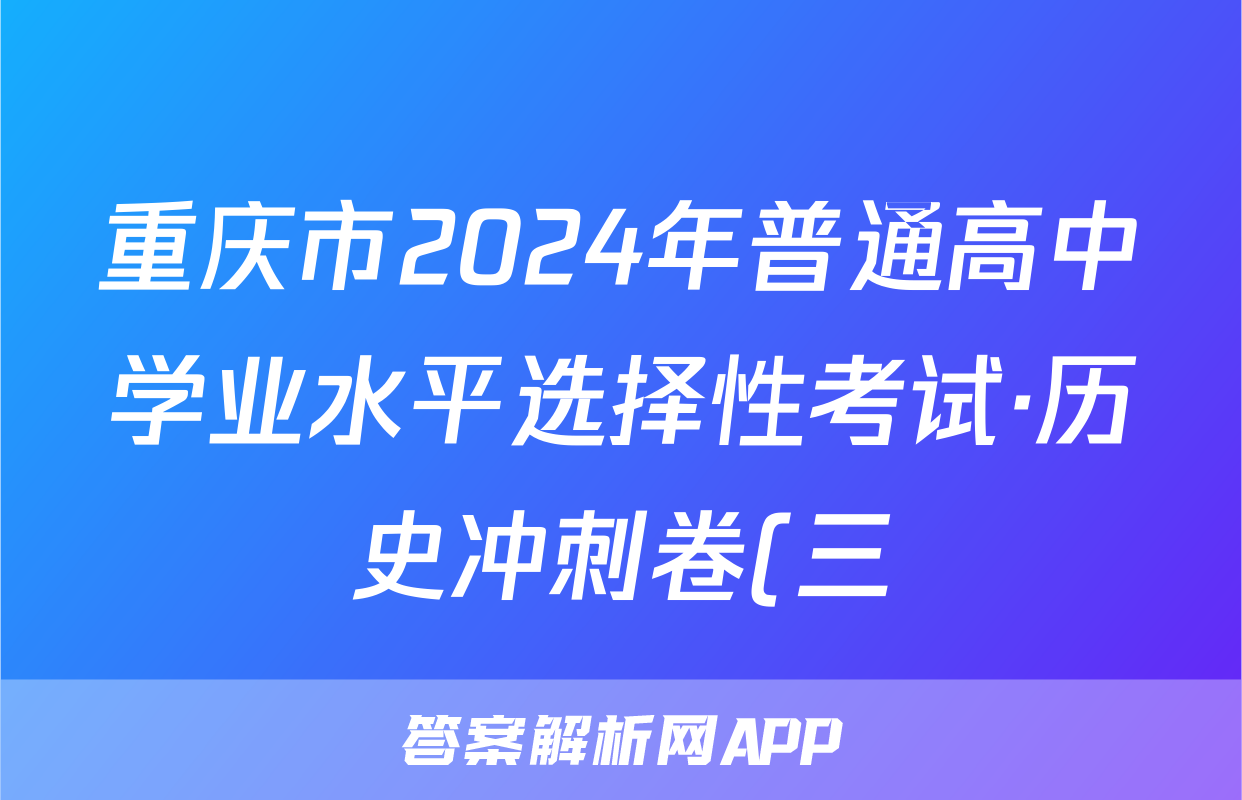 重庆市2024年普通高中学业水平选择性考试·历史冲刺卷(三)3[24·(新高考)CCJ·历史·CQ]答案正在持续更新,目前2026届海淀八模答案网为大家整理了相关试题及答案,供大家查缺补漏,高效提升成绩。