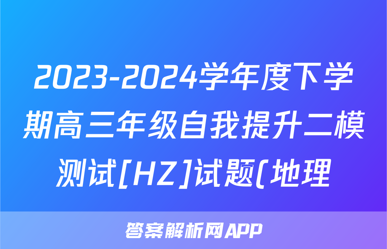 2023-2024学年度下学期高三年级自我提升二模测试[HZ]试题(地理)正在持续更新,目前2026届海淀八模答案网为大家整理了相关试题及答案,供大家查缺补漏,高效提升成绩。