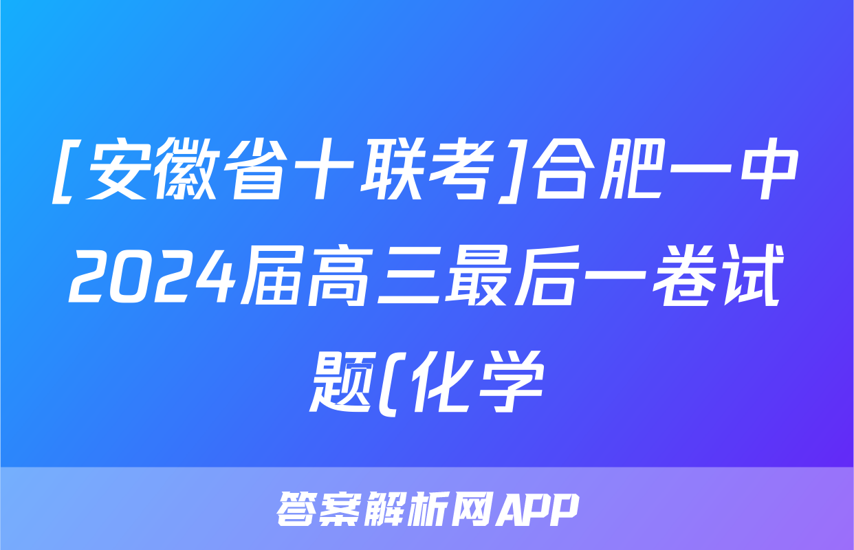 [安徽省十联考]合肥一中2024届高三最后一卷试题(化学)正在持续更新,目前2026届海淀八模答案网为大家整理了相关试题及答案,供大家查缺补漏,高效提升成绩。
