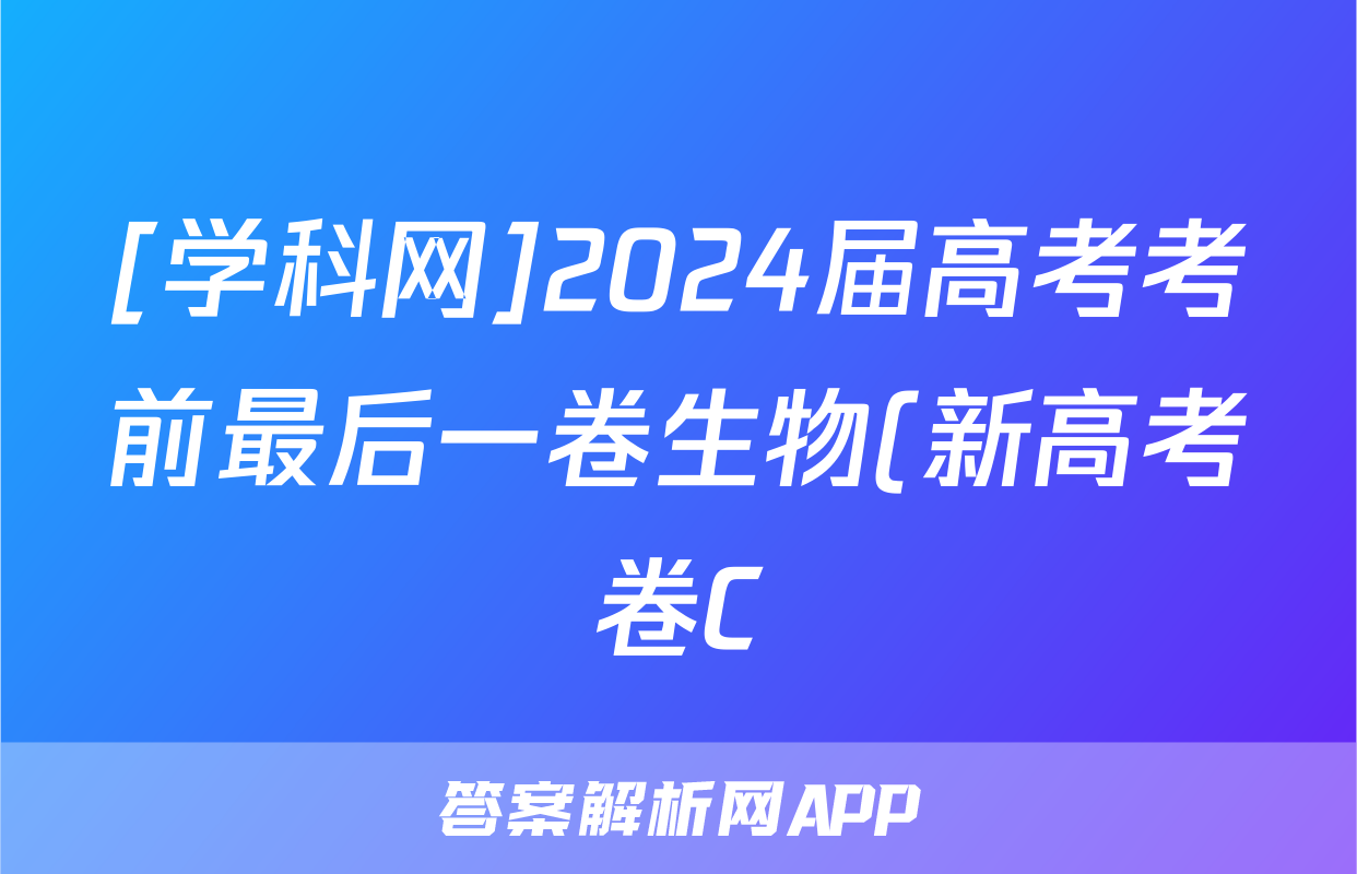 [学科网]2024届高考考前最后一卷生物(新高考卷C)(新教材)试题正在持续更新,目前2026届海淀八模答案网为大家整理了相关试题及答案,供大家查缺补漏,高效提升成绩。