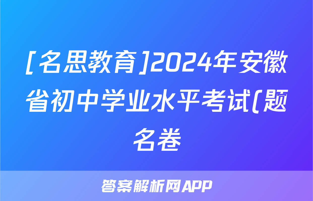 [名思教育]2024年安徽省初中学业水平考试(题名卷)答案(化学)正在持续更新,目前2026届海淀八模答案网为大家整理了相关试题及答案,供大家查缺补漏,高效提升成绩。