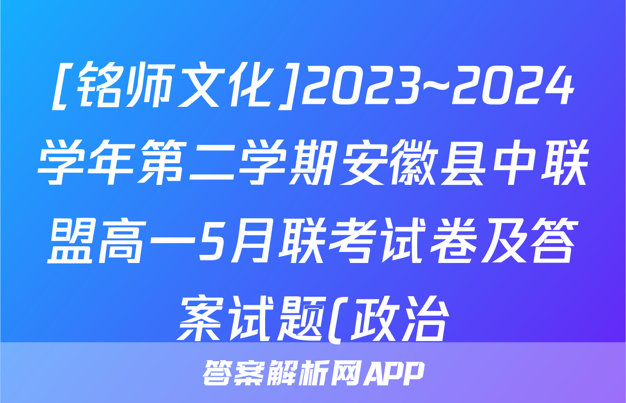 [铭师文化]2023~2024学年第二学期安徽县中联盟高一5月联考试卷及答案试题(政治)正在持续更新,目前2026届海淀八模答案网为大家整理了相关试题及答案,供大家查缺补漏,高效提升成绩。