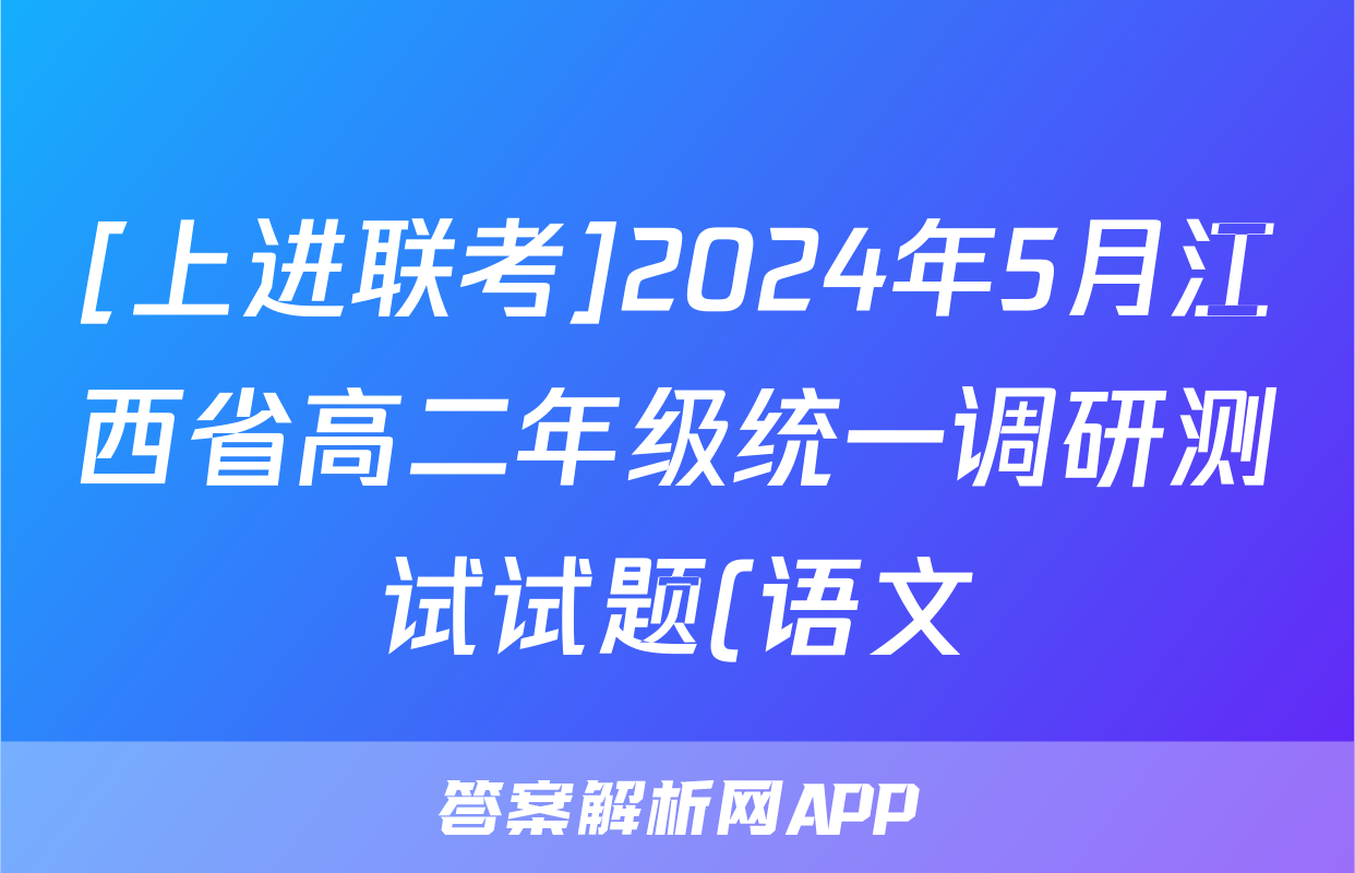 [上进联考]2024年5月江西省高二年级统一调研测试试题(语文)正在持续更新,目前2026届海淀八模答案网为大家整理了相关试题及答案,供大家查缺补漏,高效提升成绩。