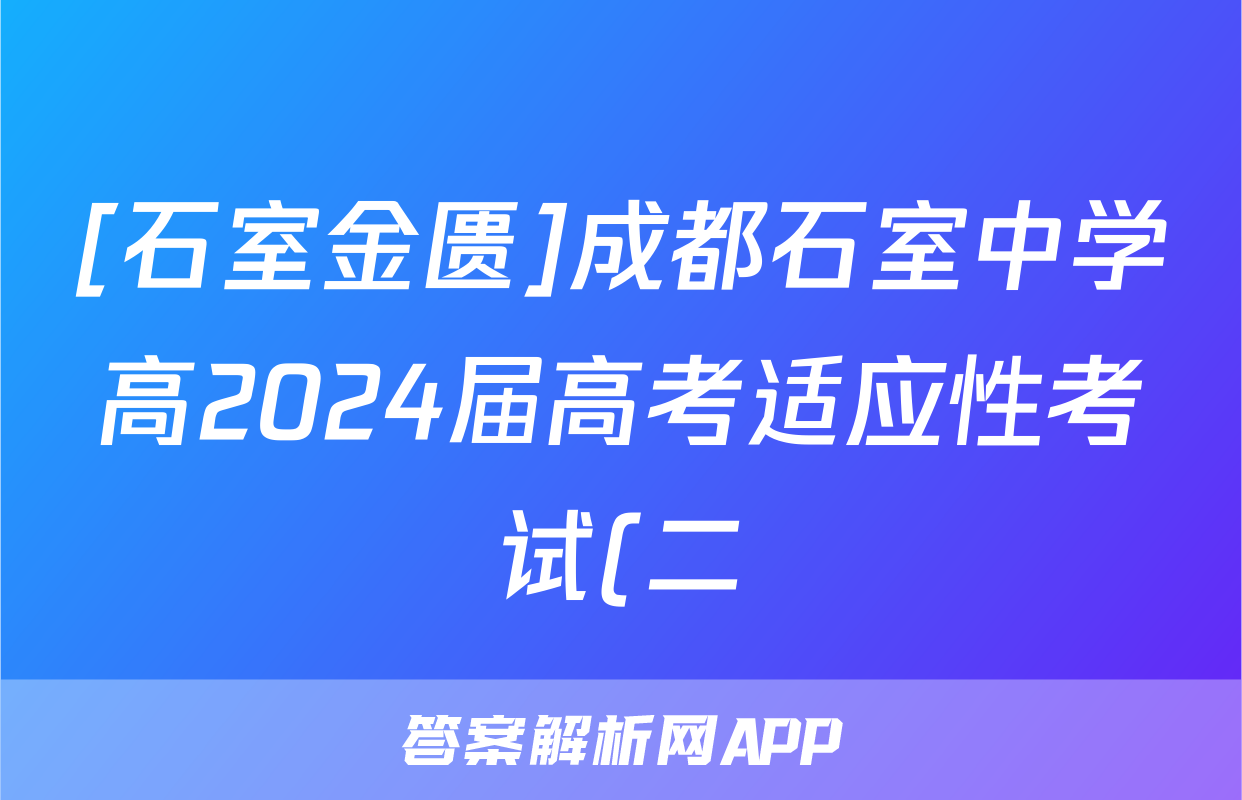 [石室金匮]成都石室中学高2024届高考适应性考试(二)2试题(化学)正在持续更新,目前2026届海淀八模答案网为大家整理了相关试题及答案,供大家查缺补漏,高效提升成绩。