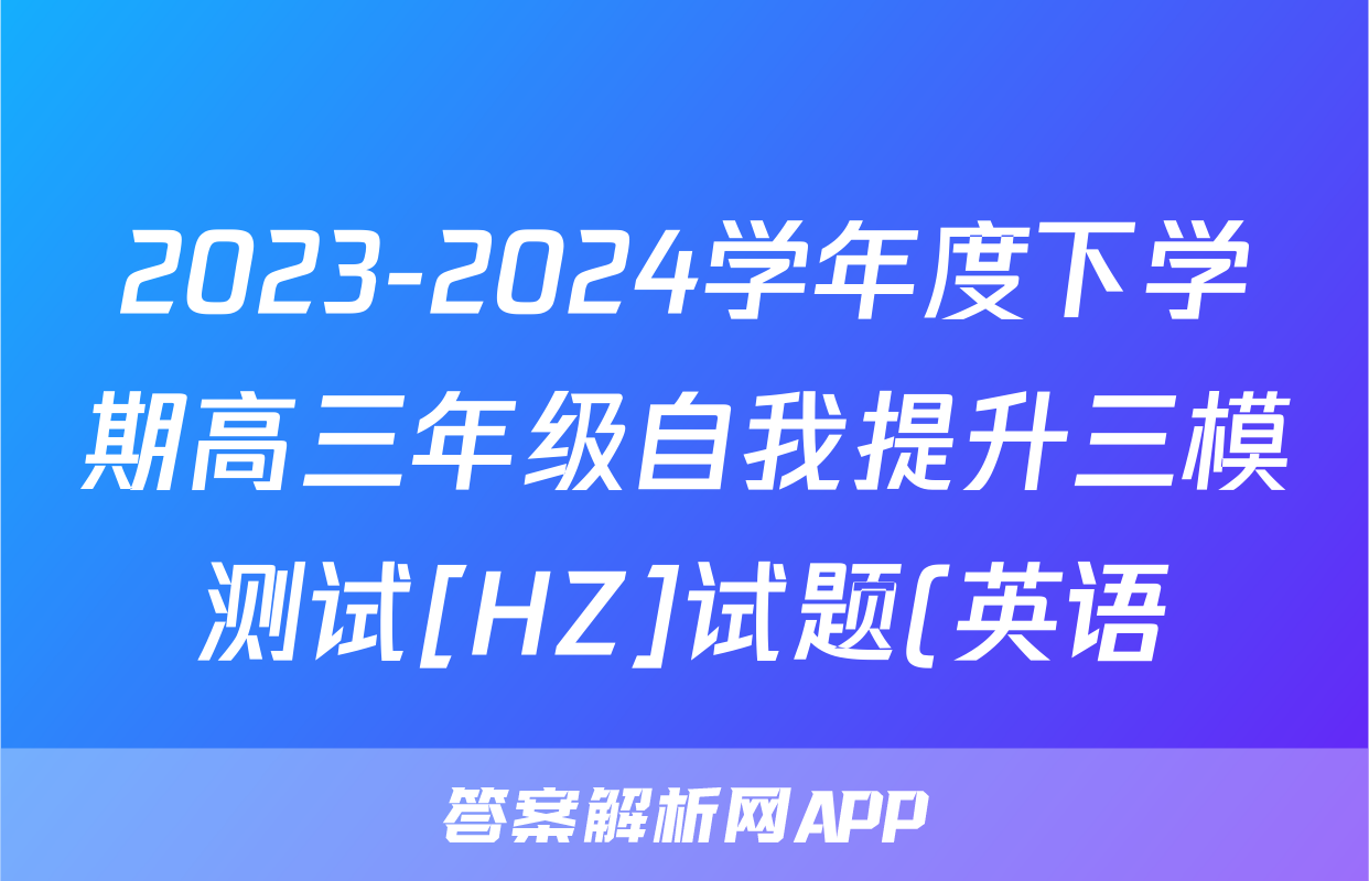 2023-2024学年度下学期高三年级自我提升三模测试[HZ]试题(英语)正在持续更新,目前2026届海淀八模答案网为大家整理了相关试题及答案,供大家查缺补漏,高效提升成绩。