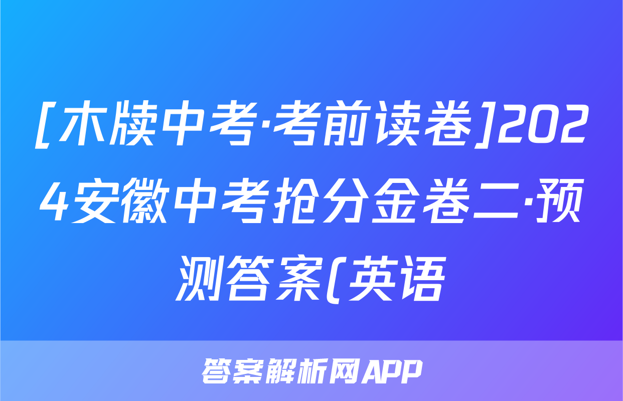 [木牍中考·考前读卷]2024安徽中考抢分金卷二·预测答案(英语)正在持续更新,目前2026届海淀八模答案网为大家整理了相关试题及答案,供大家查缺补漏,高效提升成绩。
