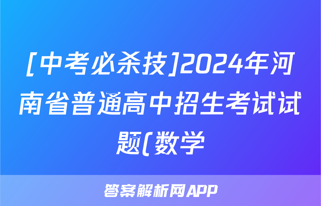 [中考必杀技]2024年河南省普通高中招生考试试题(数学)正在持续更新,目前2026届海淀八模答案网为大家整理了相关试题及答案,供大家查缺补漏,高效提升成绩。