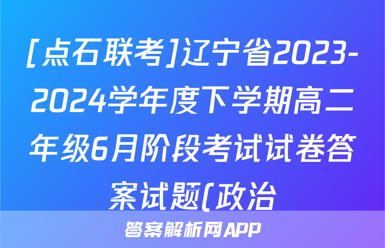 [点石联考]辽宁省2023-2024学年度下学期高二年级6月阶段考试试卷答案试题(政治)正在持续更新,目前2026届海淀八模答案网为大家整理了相关试题及答案,供大家查缺补漏,高效提升成绩。