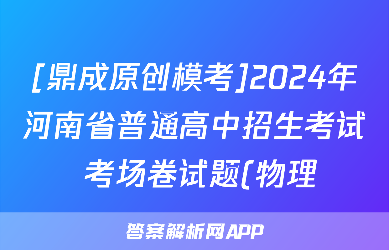 [鼎成原创模考]2024年河南省普通高中招生考试 考场卷试题(物理)正在持续更新,目前2026届海淀八模答案网为大家整理了相关试题及答案,供大家查缺补漏,高效提升成绩。