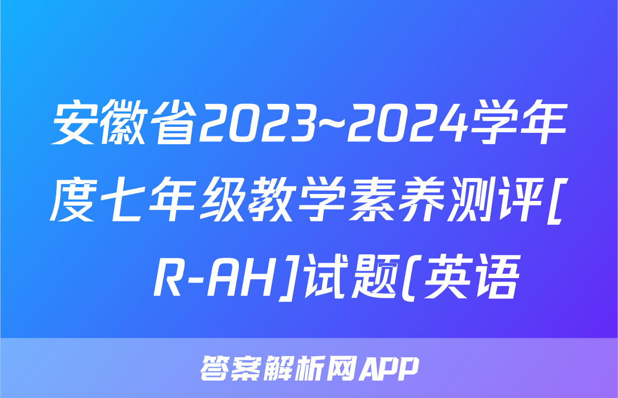 安徽省2023~2024学年度七年级教学素养测评[☐R-AH]试题(英语)正在持续更新,目前2026届海淀八模答案网为大家整理了相关试题及答案,供大家查缺补漏,高效提升成绩。