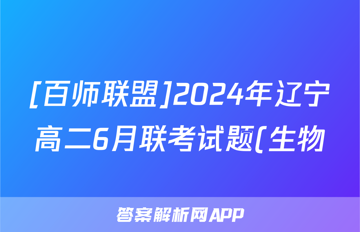 [百师联盟]2024年辽宁高二6月联考试题(生物)正在持续更新,目前2026届海淀八模答案网为大家整理了相关试题及答案,供大家查缺补漏,高效提升成绩。
