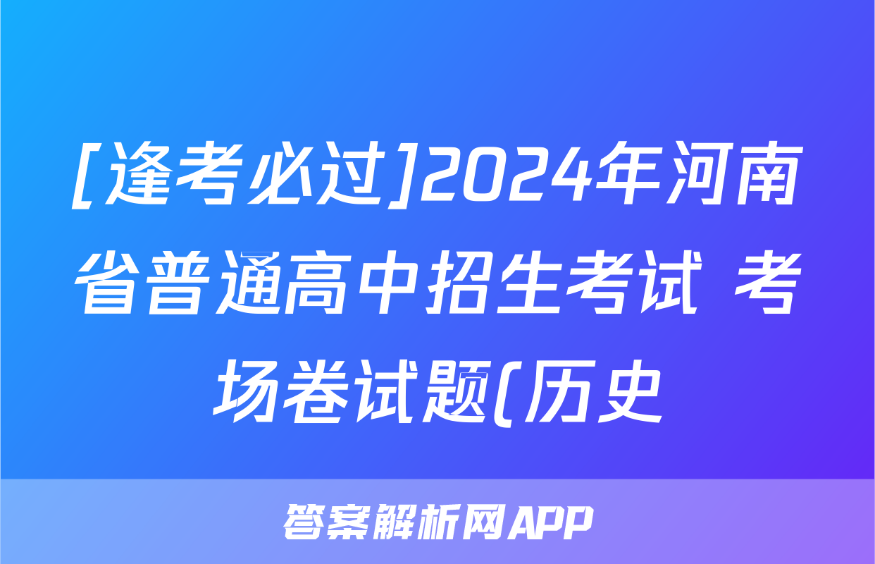 [逢考必过]2024年河南省普通高中招生考试 考场卷试题(历史)