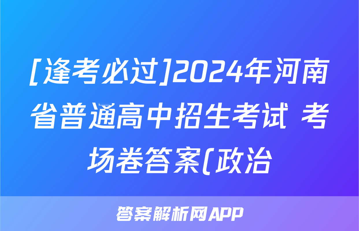 [逢考必过]2024年河南省普通高中招生考试 考场卷答案(政治)正在持续更新,目前2026届海淀八模答案网为大家整理了相关试题及答案,供大家查缺补漏,高效提升成绩。