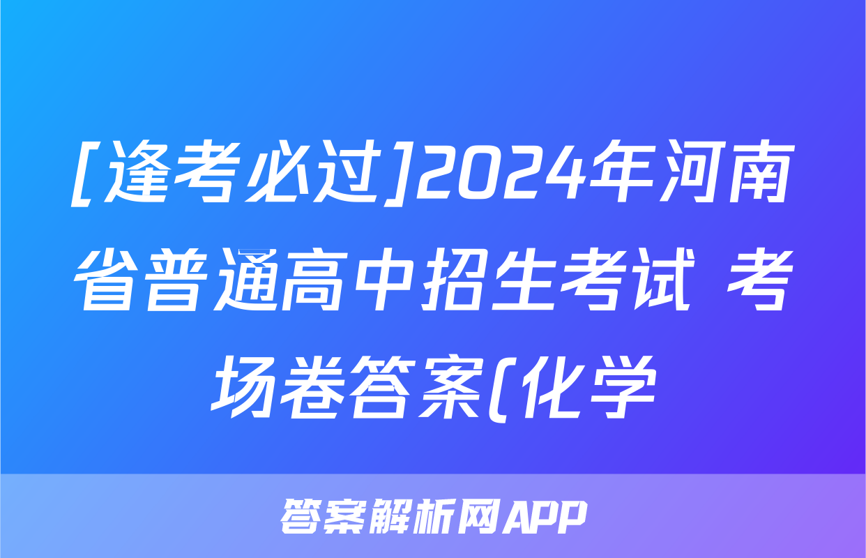 [逢考必过]2024年河南省普通高中招生考试 考场卷答案(化学)正在持续更新,目前2026届海淀八模答案网为大家整理了相关试题及答案,供大家查缺补漏,高效提升成绩。