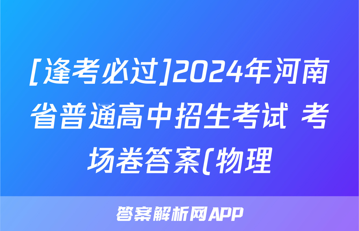 [逢考必过]2024年河南省普通高中招生考试 考场卷答案(物理)正在持续更新,目前2026届海淀八模答案网为大家整理了相关试题及答案,供大家查缺补漏,高效提升成绩。