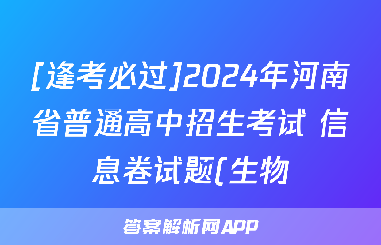 [逢考必过]2024年河南省普通高中招生考试 信息卷试题(生物)
