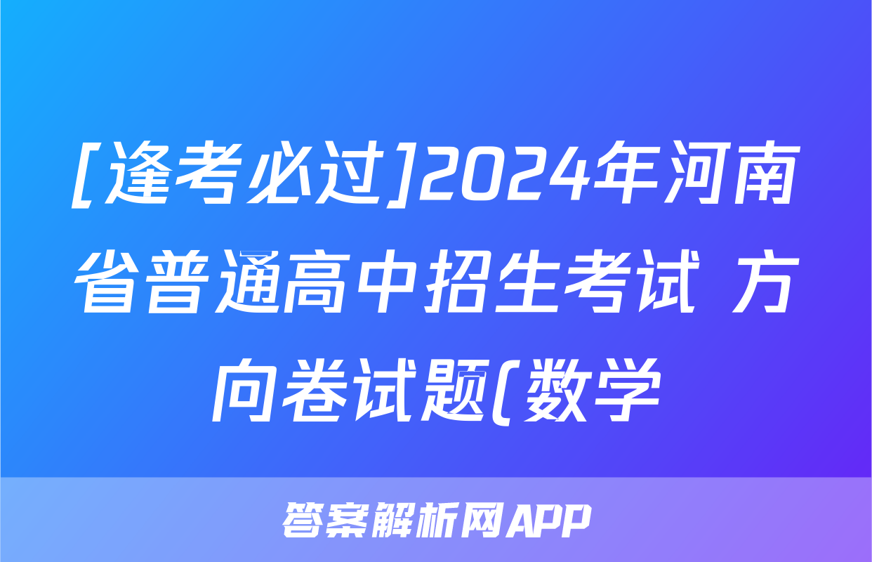 [逢考必过]2024年河南省普通高中招生考试 方向卷试题(数学)