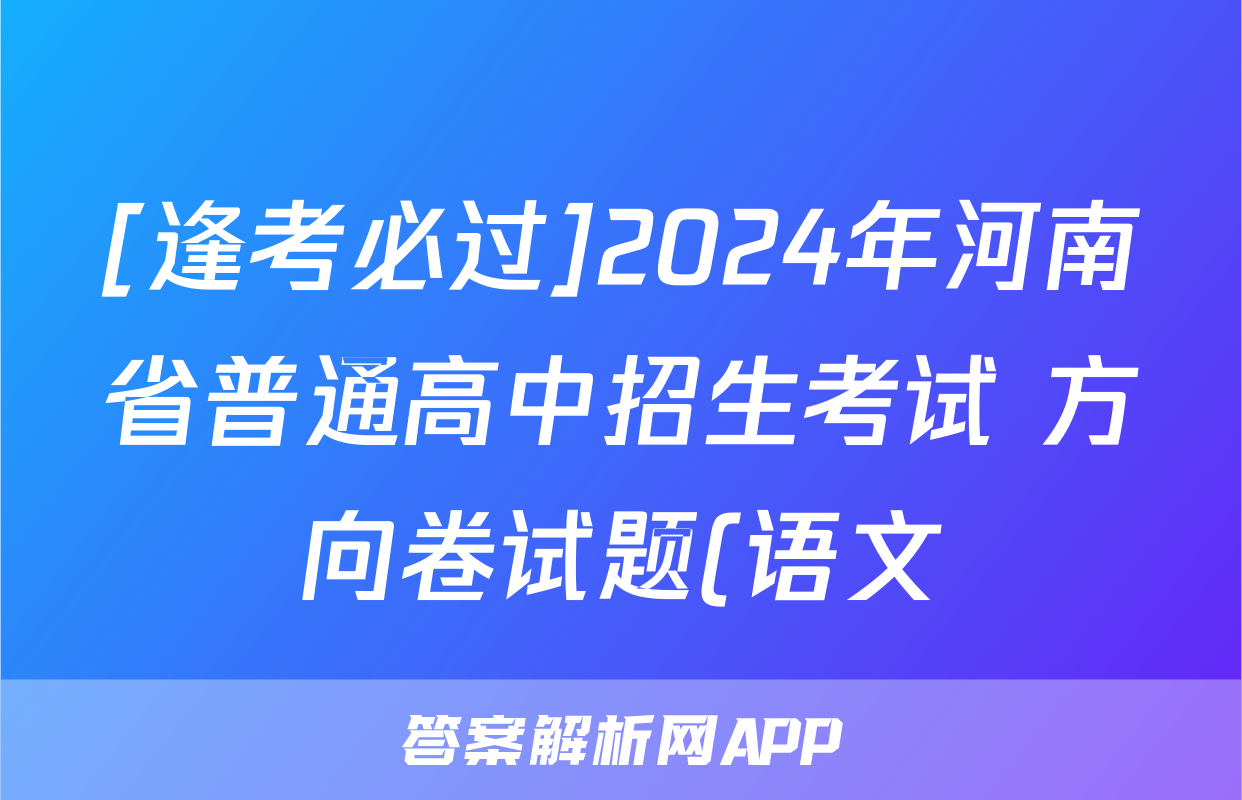 [逢考必过]2024年河南省普通高中招生考试 方向卷试题(语文)正在持续更新,目前2026届海淀八模答案网为大家整理了相关试题及答案,供大家查缺补漏,高效提升成绩。
