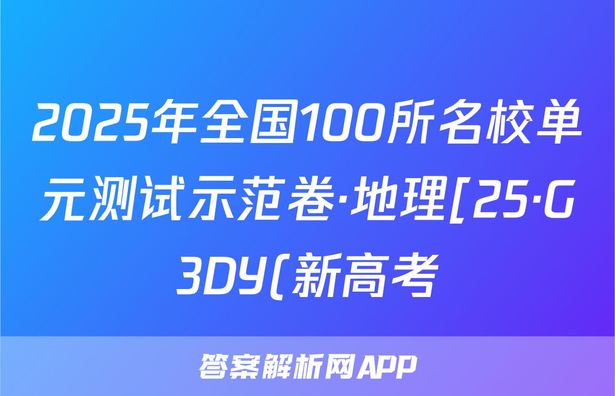 2025年全国100所名校单元测试示范卷·地理[25·G3DY(新高考)·地理-XJB-必考-QG](二) 第二单元 岩石圈与地表形态正在持续更新,目前2026届海淀八模答案网为大家整理了相关试题及答案,供大家查缺补漏,高效提升成绩。