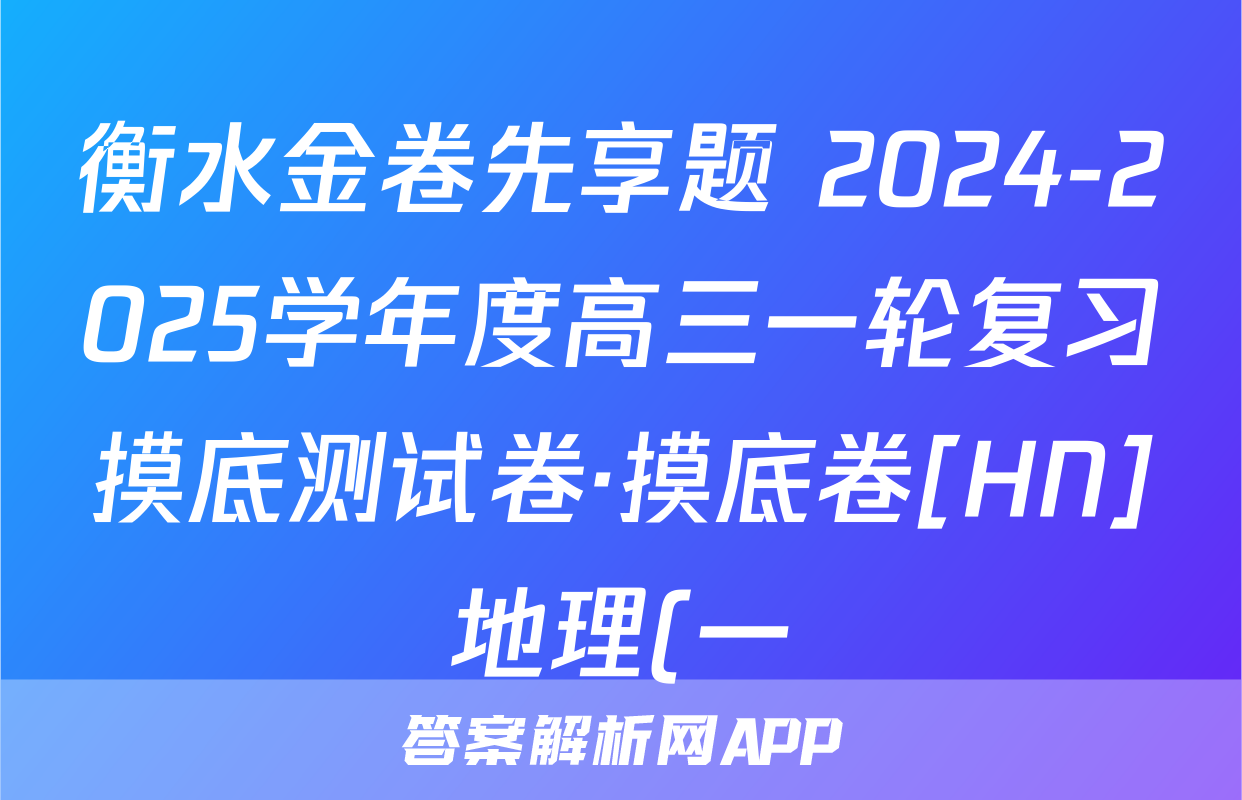 衡水金卷先享题 2024-2025学年度高三一轮复习摸底测试卷·摸底卷[HN]地理(一)1答案正在持续更新,目前2026届海淀八模答案网为大家整理了相关试题及答案,供大家查缺补漏,高效提升成绩。