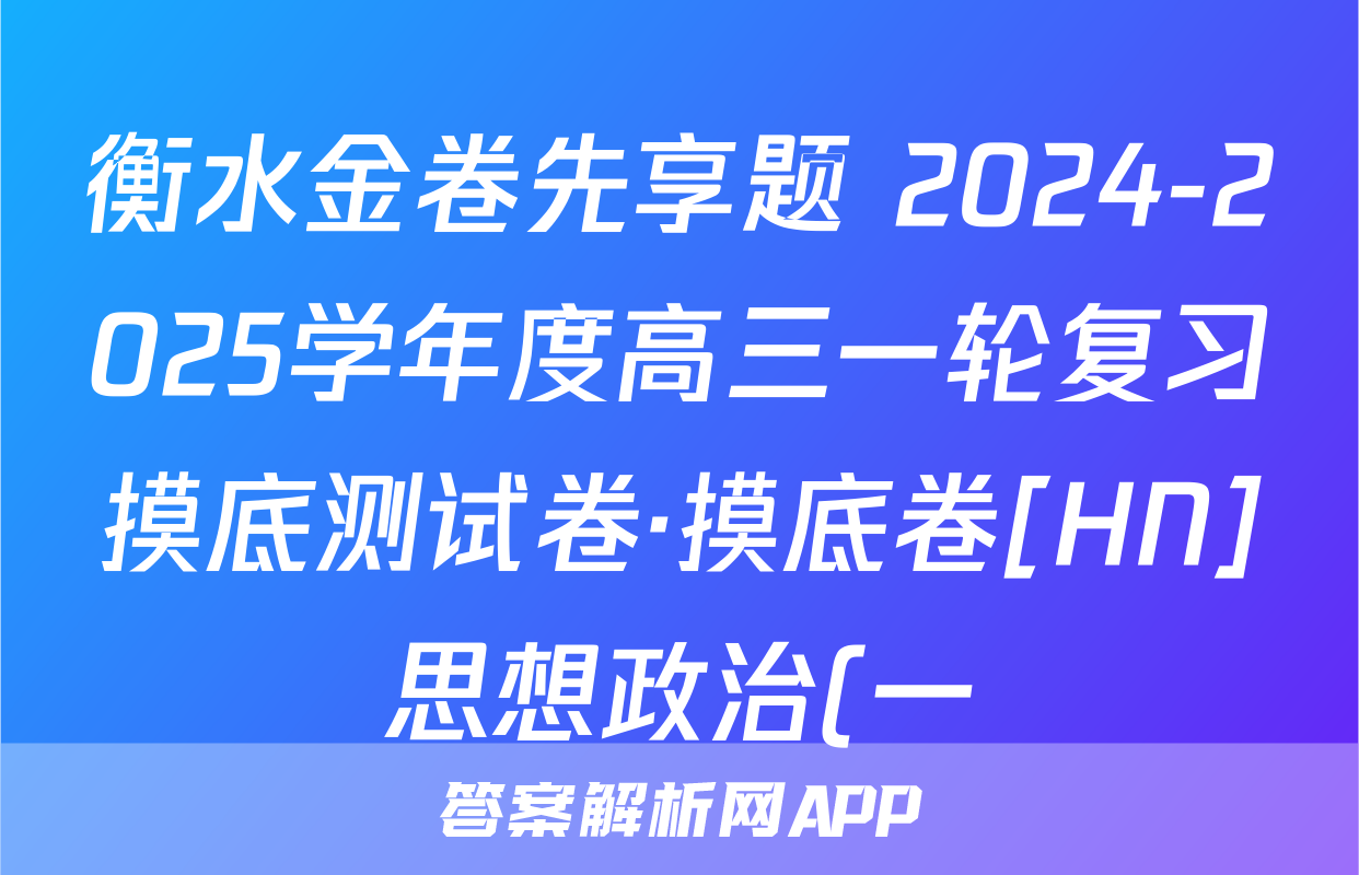 衡水金卷先享题 2024-2025学年度高三一轮复习摸底测试卷·摸底卷[HN]思想政治(一)1答案正在持续更新,目前2026届海淀八模答案网为大家整理了相关试题及答案,供大家查缺补漏,高效提升成绩。