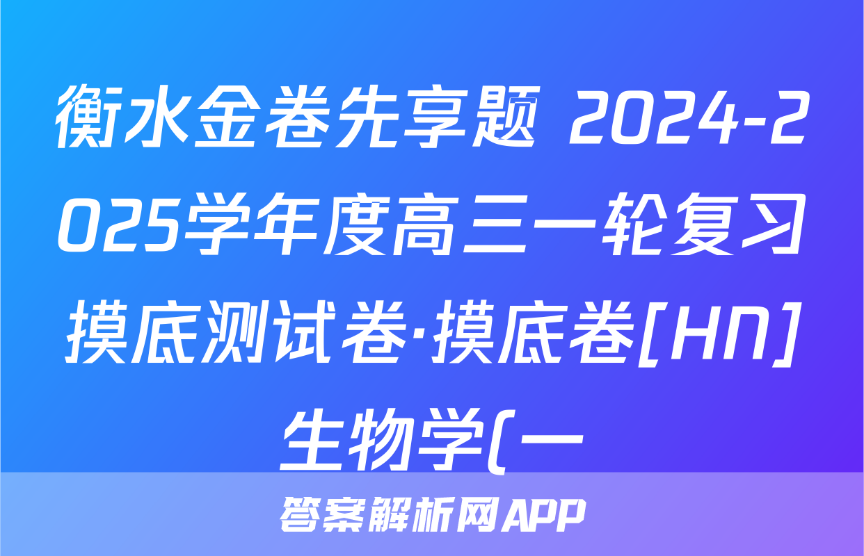衡水金卷先享题 2024-2025学年度高三一轮复习摸底测试卷·摸底卷[HN]生物学(一)1答案正在持续更新,目前2026届海淀八模答案网为大家整理了相关试题及答案,供大家查缺补漏,高效提升成绩。