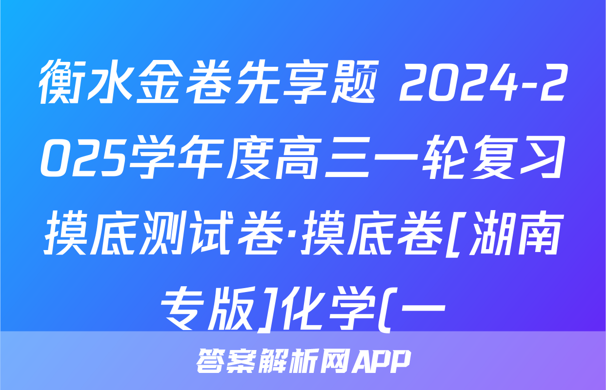 衡水金卷先享题 2024-2025学年度高三一轮复习摸底测试卷·摸底卷[湖南专版]化学(一)1试题正在持续更新,目前2026届海淀八模答案网为大家整理了相关试题及答案,供大家查缺补漏,高效提升成绩。