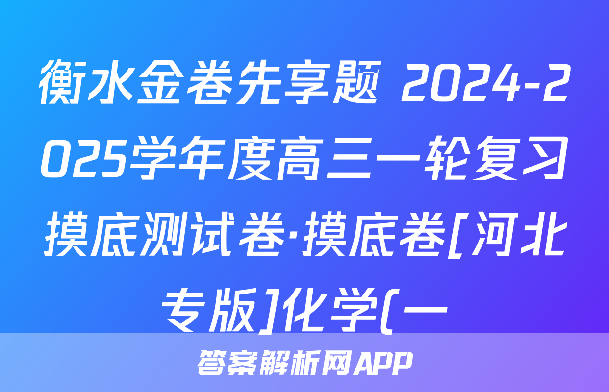 衡水金卷先享题 2024-2025学年度高三一轮复习摸底测试卷·摸底卷[河北专版]化学(一)1试题正在持续更新,目前2026届海淀八模答案网为大家整理了相关试题及答案,供大家查缺补漏,高效提升成绩。