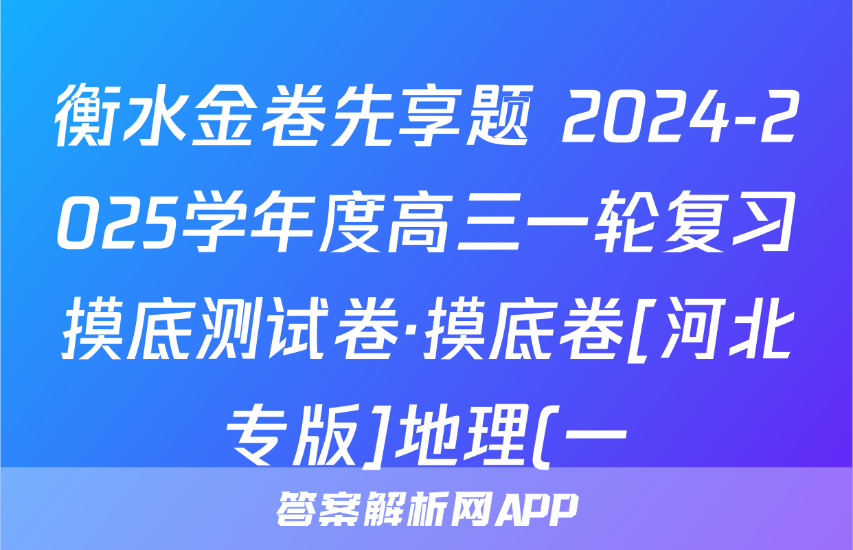 衡水金卷先享题 2024-2025学年度高三一轮复习摸底测试卷·摸底卷[河北专版]地理(一)1答案正在持续更新,目前2026届海淀八模答案网为大家整理了相关试题及答案,供大家查缺补漏,高效提升成绩。