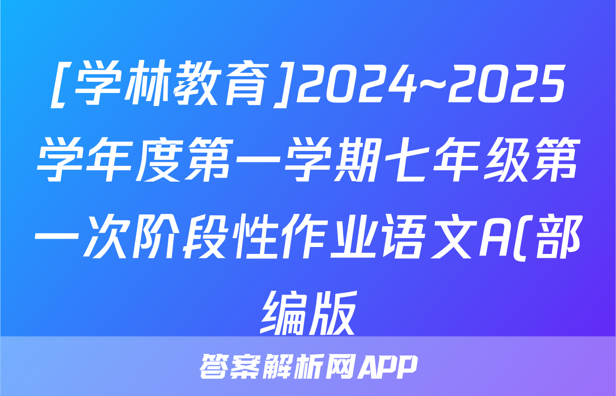 [学林教育]2024~2025学年度第一学期七年级第一次阶段性作业语文A(部编版)试题正在持续更新,目前2026届海淀八模答案网为大家整理了相关试题及答案,供大家查缺补漏,高效提升成绩。