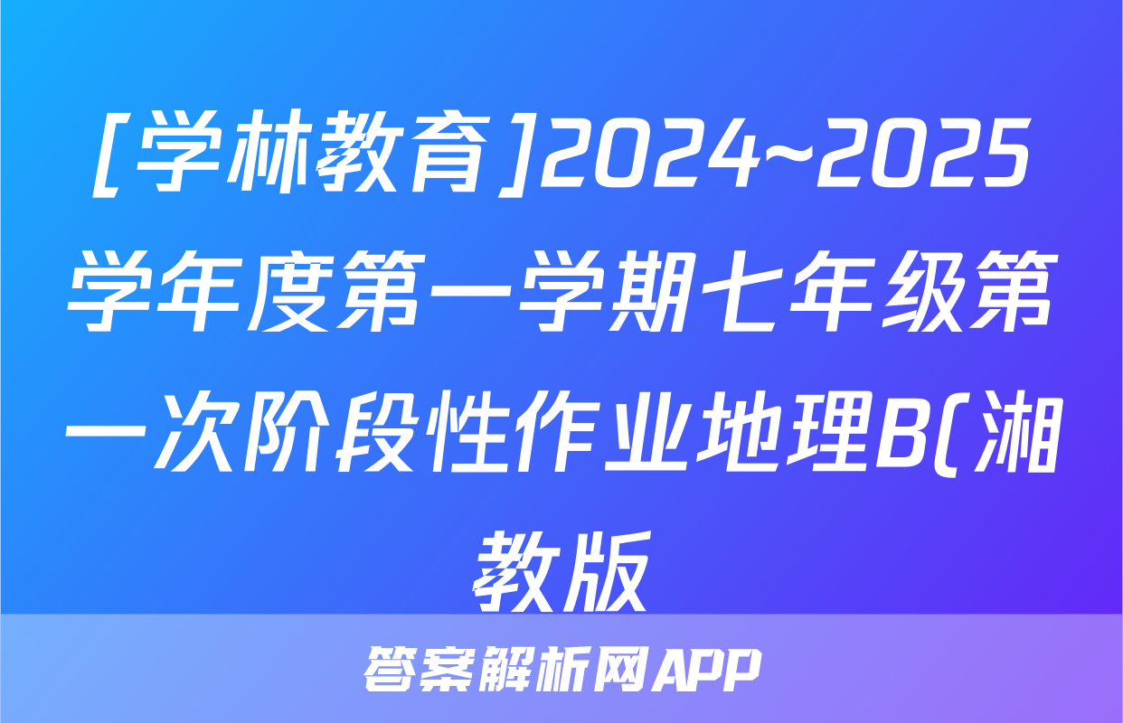 [学林教育]2024~2025学年度第一学期七年级第一次阶段性作业地理B(湘教版)试题正在持续更新,目前2026届海淀八模答案网为大家整理了相关试题及答案,供大家查缺补漏,高效提升成绩。