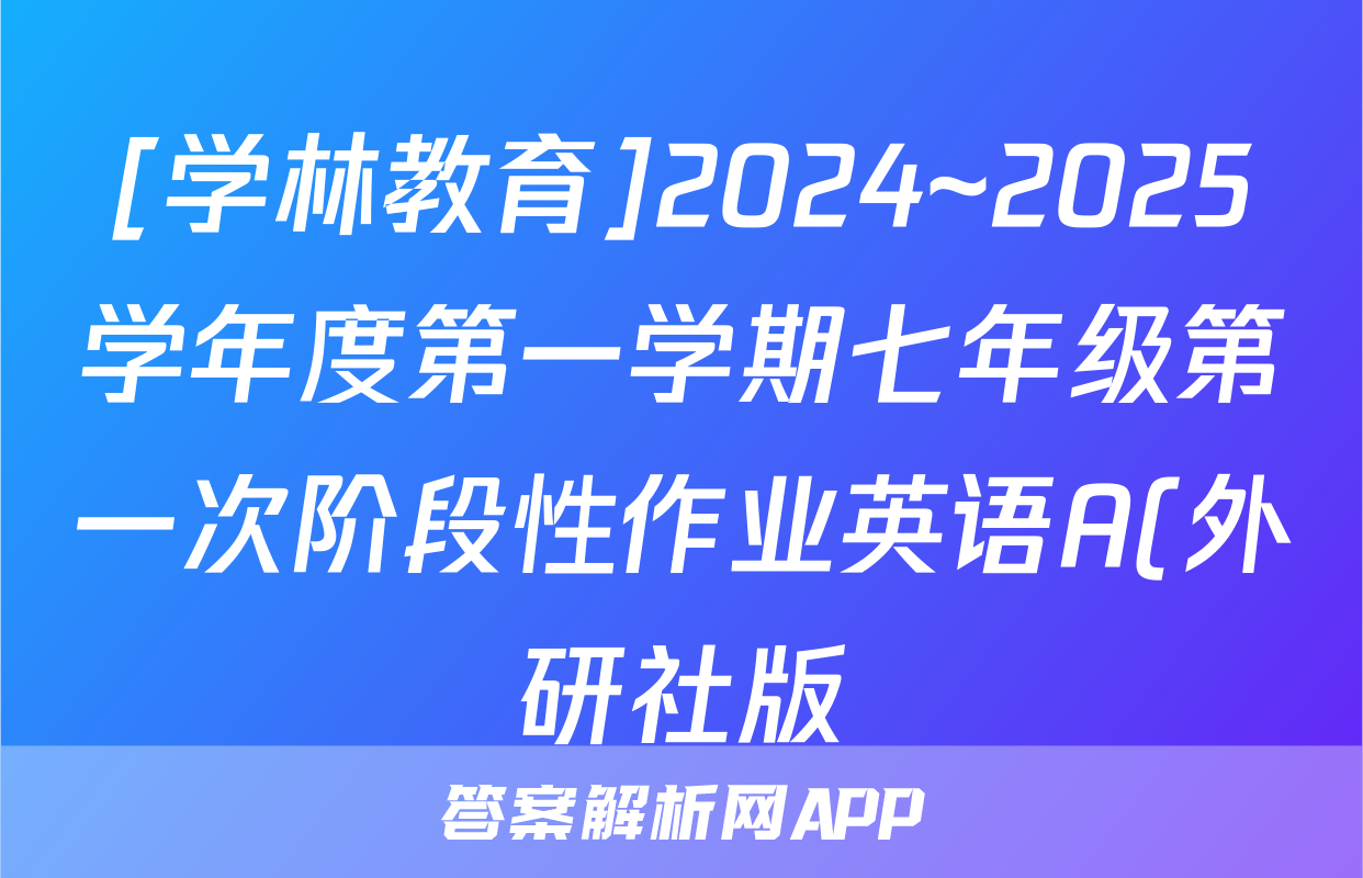 [学林教育]2024~2025学年度第一学期七年级第一次阶段性作业英语A(外研社版)试题正在持续更新,目前2026届海淀八模答案网为大家整理了相关试题及答案,供大家查缺补漏,高效提升成绩。