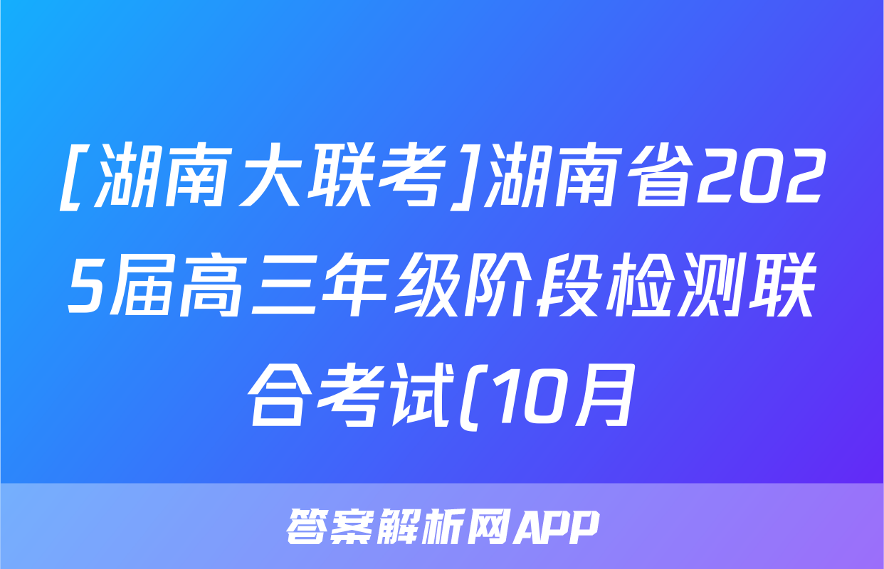 [湖南大联考]湖南省2025届高三年级阶段检测联合考试(10月)化学试题正在持续更新,目前2026届海淀八模答案网为大家整理了相关试题及答案,供大家查缺补漏,高效提升成绩。