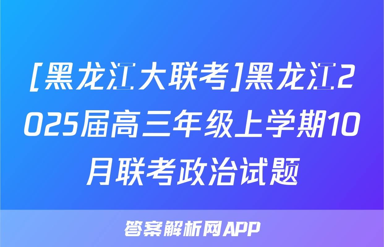 [黑龙江大联考]黑龙江2025届高三年级上学期10月联考政治试题正在持续更新,目前2026届海淀八模答案网为大家整理了相关试题及答案,供大家查缺补漏,高效提升成绩。