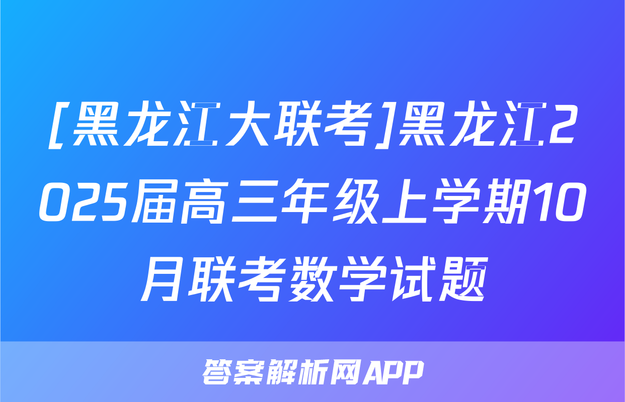 [黑龙江大联考]黑龙江2025届高三年级上学期10月联考数学试题正在持续更新,目前2026届海淀八模答案网为大家整理了相关试题及答案,供大家查缺补漏,高效提升成绩。