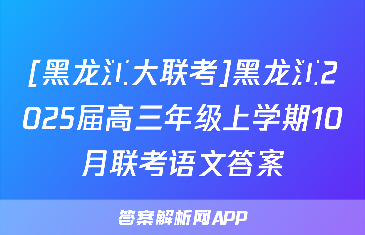 [黑龙江大联考]黑龙江2025届高三年级上学期10月联考语文答案正在持续更新,目前2026届海淀八模答案网为大家整理了相关试题及答案,供大家查缺补漏,高效提升成绩。