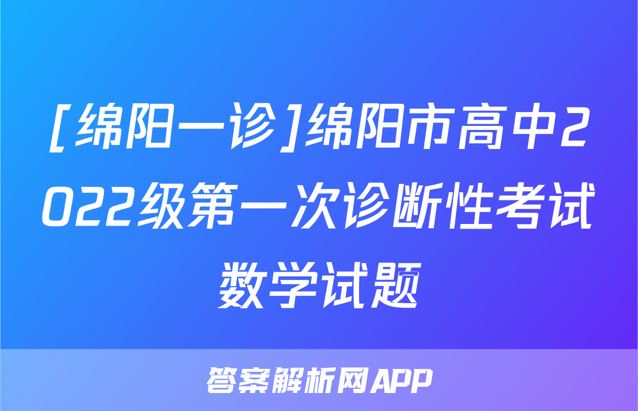 [绵阳一诊]绵阳市高中2022级第一次诊断性考试数学试题正在持续更新,目前2026届海淀八模答案网为大家整理了相关试题及答案,供大家查缺补漏,高效提升成绩。