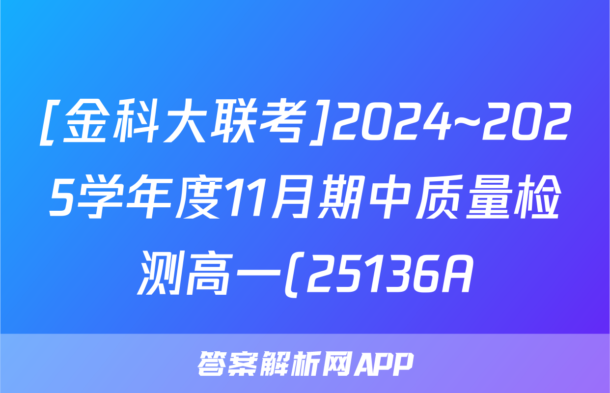 [金科大联考]2024~2025学年度11月期中质量检测高一(25136A)地理答案正在持续更新,目前2026届海淀八模答案网为大家整理了相关试题及答案,供大家查缺补漏,高效提升成绩。