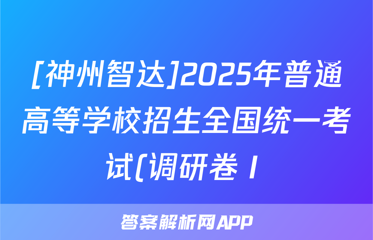 [神州智达]2025年普通高等学校招生全国统一考试(调研卷Ⅰ)政治试题正在持续更新,目前2026届海淀八模答案网为大家整理了相关试题及答案,供大家查缺补漏,高效提升成绩。